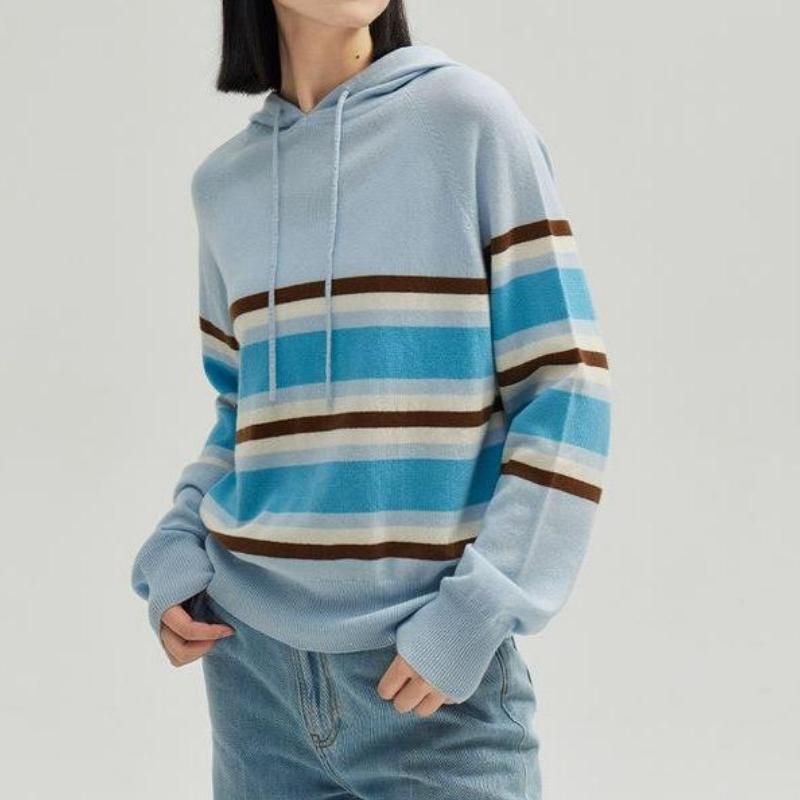 Striped Hooded Blue Sweater
