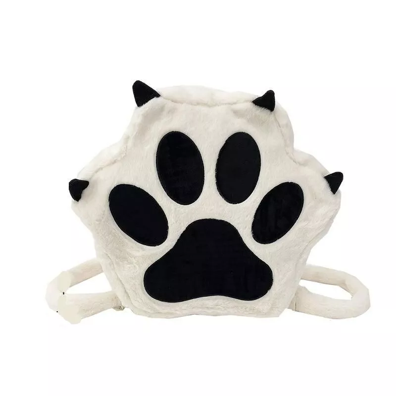 Cute Kawaii Cat Paw Plush Backpack – Soft Fluffy Casual Schoolbag for Girls